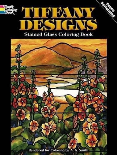 Tiffany Designs Stained Glass Coloring Book: Smith, A. G ~ The studios of Louis Comfort Tiffany produced the finest examples of stained glass art, specializing in richly ornamented window designs. This coloring book features 16 gorgeous Tiffany window motifs, faithfully re-created from the master's own designs of flowers, birds, and landscapes. Boldly outlined on translucent paper, the patterns can be colored with crayons, felt-tipped pens, acrylics .